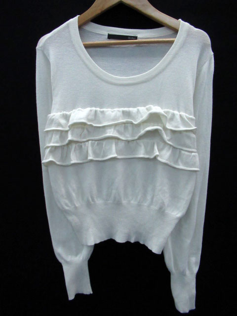 【中古】ミッシェルクラン MICHEL KLEIN ニット カットソー 長袖 フリル ウール混 オフホワイト 38 レディース 【ベクトル 古着】 181025 ブランド古着ベクトルプレミアム店