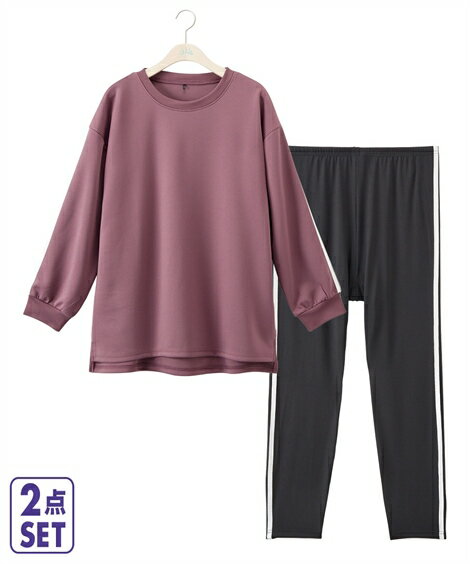 トレーナー 大きいサイズ レディース 2点セット 配色 切替 プルオーバー + パンツ クロ系/パープル系/青系 LL/3L/4L ニッセン nissen